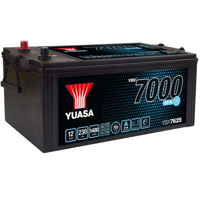 YUASA YBX7625 12V 230Ah 1400A (EN) – Bezúdržbová EFB SHD baterie pro nákladní vozy a techniku
