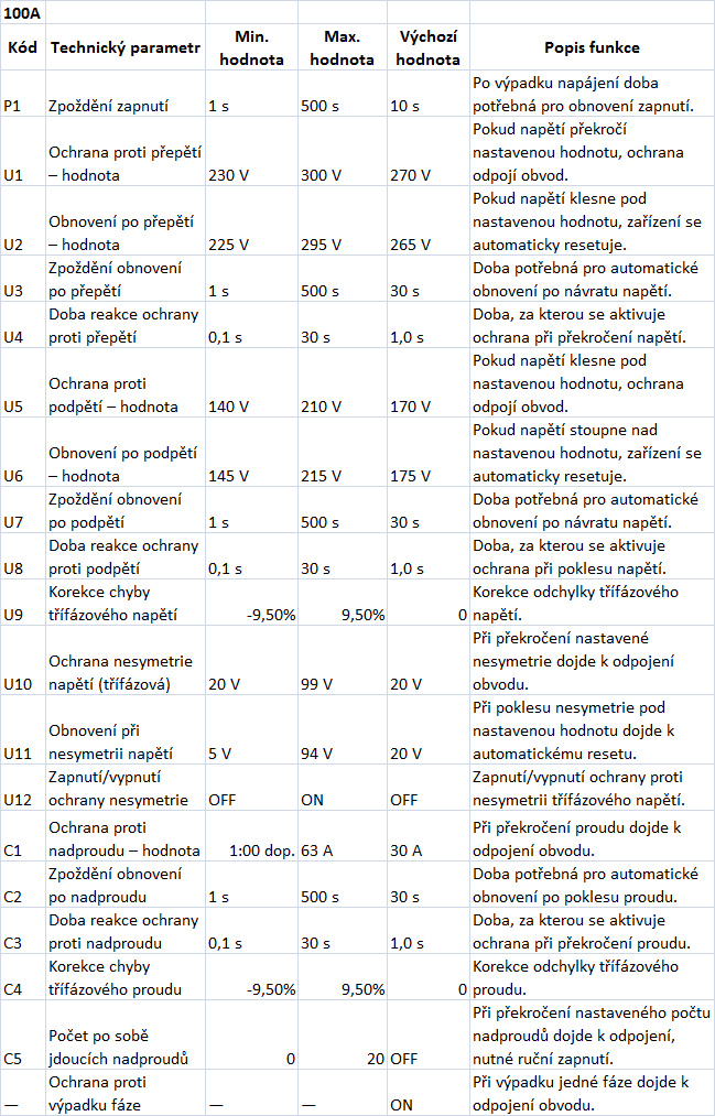 ✅ Ochrana proti přepětí (nastavitelná)