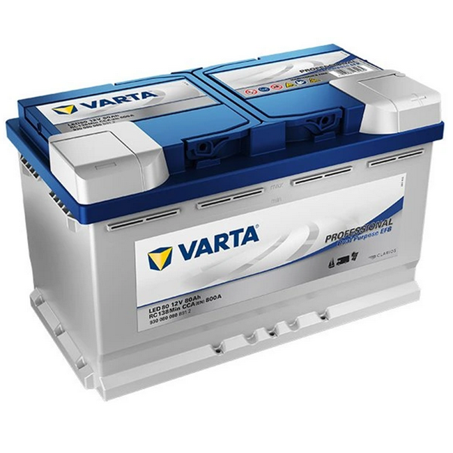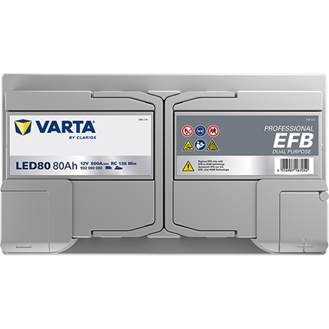 VARTA Professional EFB Dual Purpose LED80 12V 80Ah 800A – Bezúdržbová trakční duální EFB baterie pro obytné vozy, karavany a lodě (932 080 080)